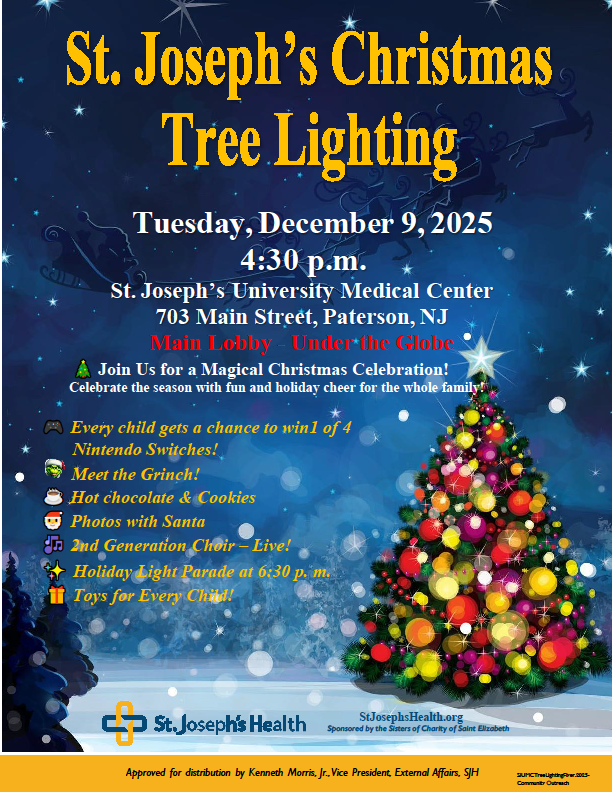 The tree lighting ceremony will kick off at 4:30 p.m., followed by the festive Holiday Light Parade at approximately 6:30 p.m.This event is a special invitation for all the children in the communities that St. Joseph's Health serve.