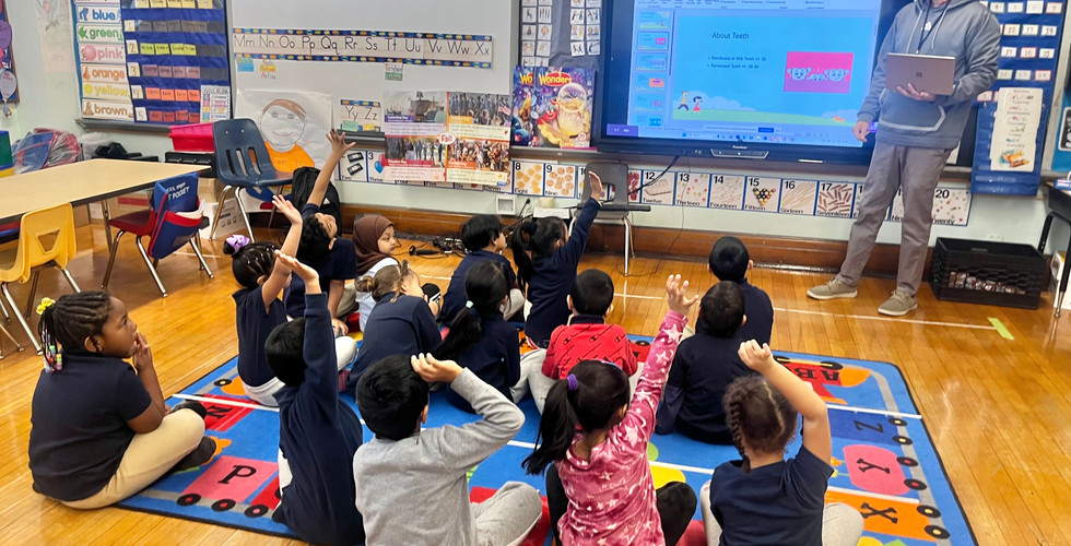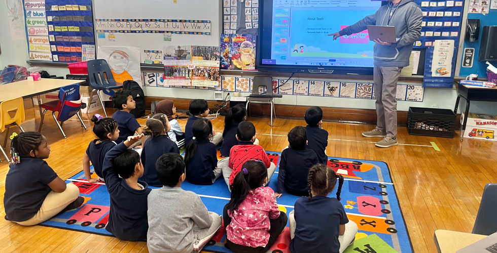 Kindergartners at School 5 learned about dental hygiene with FSCS intern Tanbar Ahmed Opu on November 2. In this fun and informative session, students learned about proper tooth-brushing and flossing, as well as the consequences of neglecting dental care.