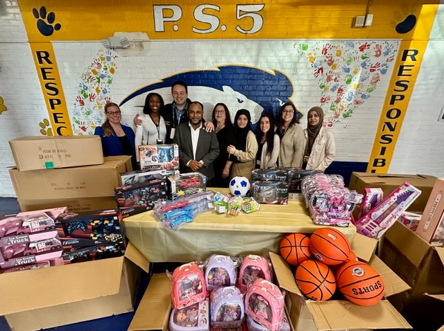 FSCS Health Center and Full-Service School 5 (NJCDC) received a generous donation of about 800 toys from Councilman Shahin Khalique on April 9. The toys were donated as a holiday incentive [Eid al-Fitr, April 10 ] for K-5th grade students.